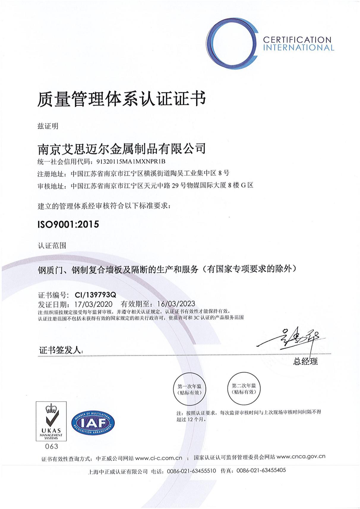 ? 艾思邁爾以嚴(yán)謹(jǐn)務(wù)實(shí)的態(tài)度已經(jīng)通過ISO9001、ISO14001、ISO45001國際質(zhì)量管理體系認(rèn)證。